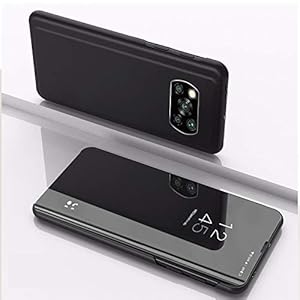 Custodia® Specchio Placcatura Vista Chiara Funzione Stand Flip Compatibile per Xiaomi Poco X3 NFC (Nero)