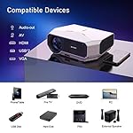 【Ampia Compatibilità e Applicazione】 Dotato di interfacce HDMI, VGA, AV, USB, il videoproiettore portatile è compatibile con telefoni Android/ iPhone, tablet, laptop, PS4/3, TV Box, TV Stick e Chromecast. Non supporta il suono Dolby. Adatto a molti ambienti: home theater, videogiochi, feste, attività all’aperto. (Nota: non è un proiettore professionale per ufficio per PPT o Word.