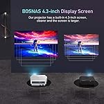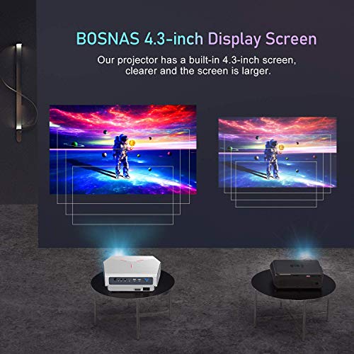 【Altoparlanti Stereo】 L’altoparlante stereo HiFi integrato offrono un’esperienza audio surround a 360°. La tecnologia avanzata di riduzione del rumore stereo HIFI elimina efficacemente il rumore del proiettore durante la riproduzione e fornisce un’eccellente qualità del suono. (Per ogni prodotto BOSNAS, offriamo la garanzia di 18 mesi, per qualsiasi problema, ti forniremo una soluzione soddisfacente.)