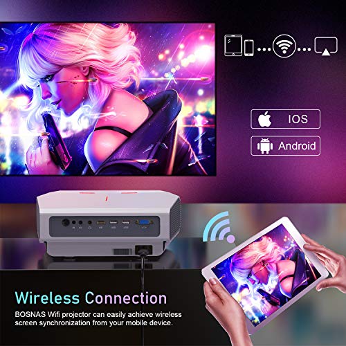 2020 BOSNAS Nuovo aggiornamento WIFI con proiettore HD portatile con specchio schermo