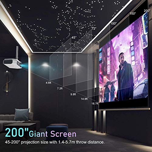 【Immagini Chiare, Colori Brillanti】 Questo proiettore WiFi offre luminosità fino a 5800 lumen, contrasto 4000:1, schermo di proiezione regolabile 4:3/16:9, risoluzione nativa 1280 * 720P, supporta Full HD 1080p, garantisce immagini nitide, riproduzione di alto colore, non affaticherà gli occhi e ti divertirai con l’home theater con la famiglia e gli amici.