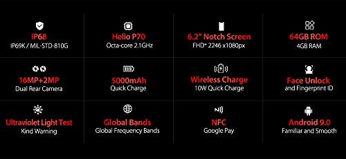 ★【Eccezzionale processore AI da 12nm, Incredibile rapidita’ di elaborazione dati (4 GB di RAM + 64 GB di ROM)】il telefono integra un processore Helio P70 con un processore AI octa-core, Cio’ determina una estrema rapidita’ di avviamento di diverse app contemporaneamente e determina un generalizzato aumento delle prestazioni finali con un minore consumo energetico. Comparato al modello 14, Ulefone Armor 6E, può risparmiare fino al 20% di energia in totale.