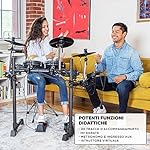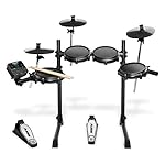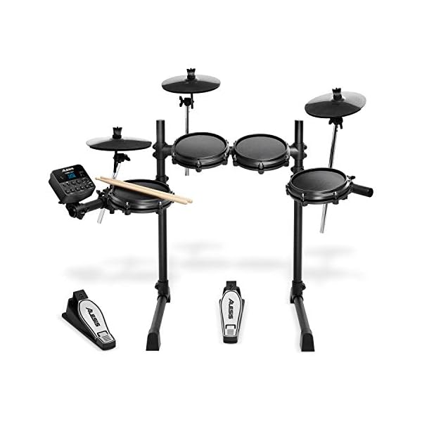 Esclusiva configurazione a sette pezzi – Pelle mesh da 8″ per rullante, 3 pelli mesh da 8″ per tom, 3 piatti da 10″ e pedali custom Alesis per hi-hat e grancassa
