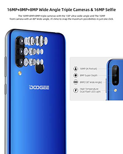 Schermo da 6,3 pollici Full FHD + Waterdrop – DOOGEE N20 sfoggia un design da 6,3 pollici Full FHD + waterdrop con risoluzione di 1080 * 2280 pixel, con un rapporto di 19: 9, l’enorme display da 6,3 pollici quasi senza cornice supporta uno schermo intero di chiarezza distinta e colori vivaci.