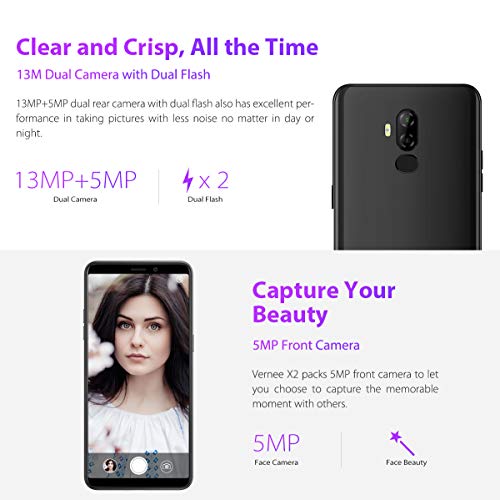 【Dual 4G VoLTE, doppia telecamera posteriore】 Lo smartphone Vernee X2 supporta 1 scheda Nano SIM + 1 scheda Nano SIM / 1 scheda SD (Nota: se si desidera estendere la memoria tramite MicroSD, è possibile inserire solo 1 scheda SIM). La doppia fotocamera 13MP + 5MP con apertura f / 2.0 offre prestazioni eccellenti sia di giorno che di notte. Supporta anche GLONASS e il sistema di navigazione dual GPS, per un posizionamento più rapido e preciso.