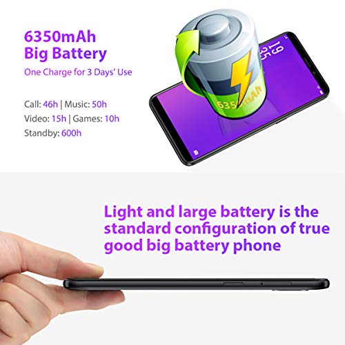 【Batteria potente da 6350 mAh】 La batteria da 6350 mAh e l’algoritmo di risparmio energetico garantiscono due giorni di utilizzo senza ricarica. Con lo smartphone Vernee X2 in mano, non devi più preoccuparti di batteria scarica quando sei fuori.