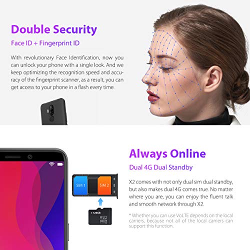 【Sblocco delle impronte digitali + Riconoscimento dei volti】 Il vernee X2 è dotato di un sensore di impronta digitale posteriore e di algoritmi avanzati di riconoscimento del volto. Ora puoi sbloccare il telefono con una semplice occhiata.