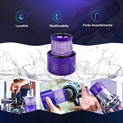 🔋【Eccellente Compatibilità e Prezzo Accessibile】Compatibile con Dyson V10 Cyclone, V10 Animal, V10 Absolute, V10 Total Clean, SV12. Fornito con un gratuito Dyson filtro di ricambio come regalo, completamente lavabile e riutilizzabile